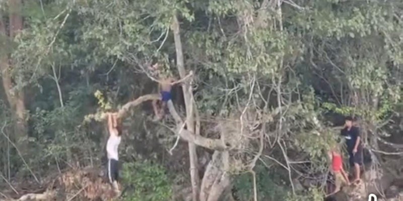El video muestra a los niños aferrados a las ramas, utilizando su peso para impulsarse en un juego improvisado y sumamente peligroso. La fuerza del balanceo, combinada con la altura sobre el río y la cercanía entre ellos, aumenta considerablemente el riesgo de colisiones accidentales.