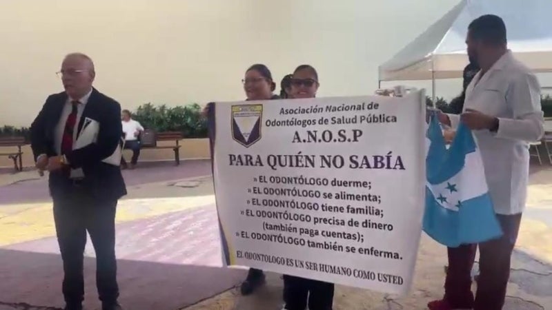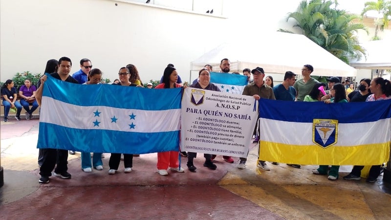 El salario actual de los odontólogos es de 21 mil lempiras y reclaman un reajuste a 29 mil. Los cirujanos dentistas colocaron banderas y se concentraron en los bajos del Congreso. Además, afirmaron que mantendrán la protesta hasta que las autoridades los escuchen.