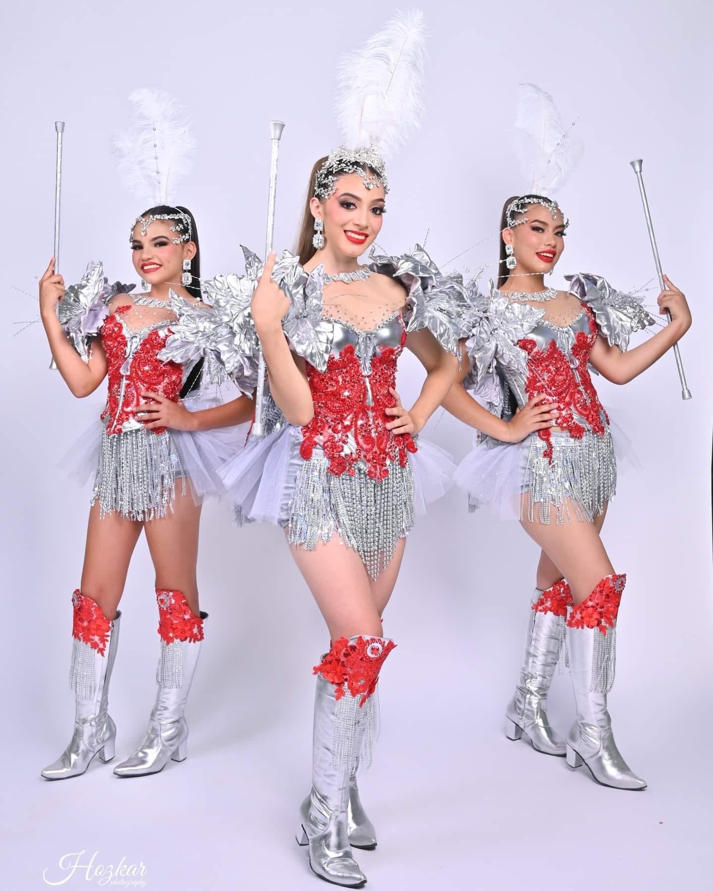 Las tradicionales pomponeras tampoco se quedaron atrás, ya que modelaron un traje de marineras y pompones rojos, un atuendo moderno y muy llamativo.