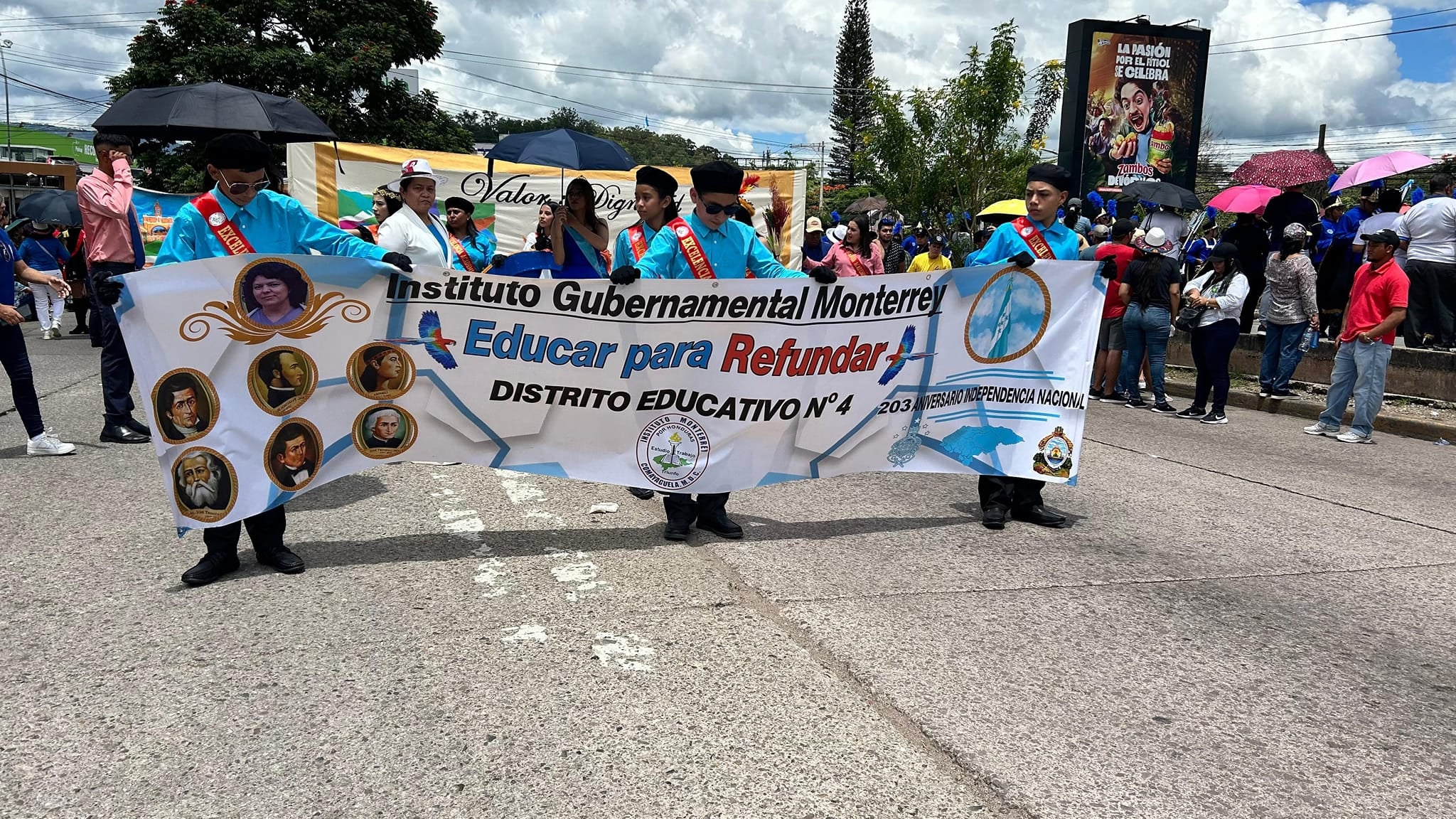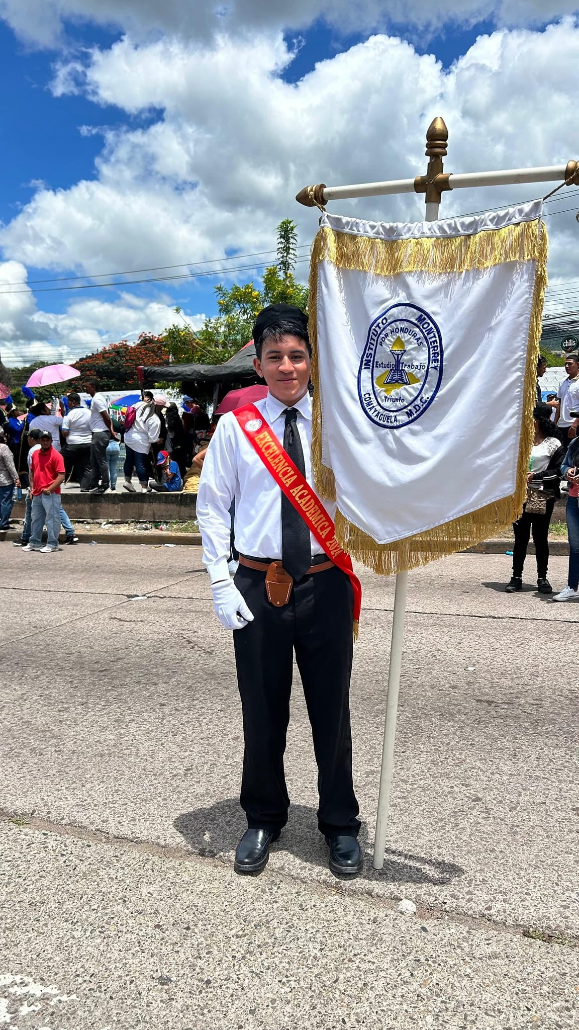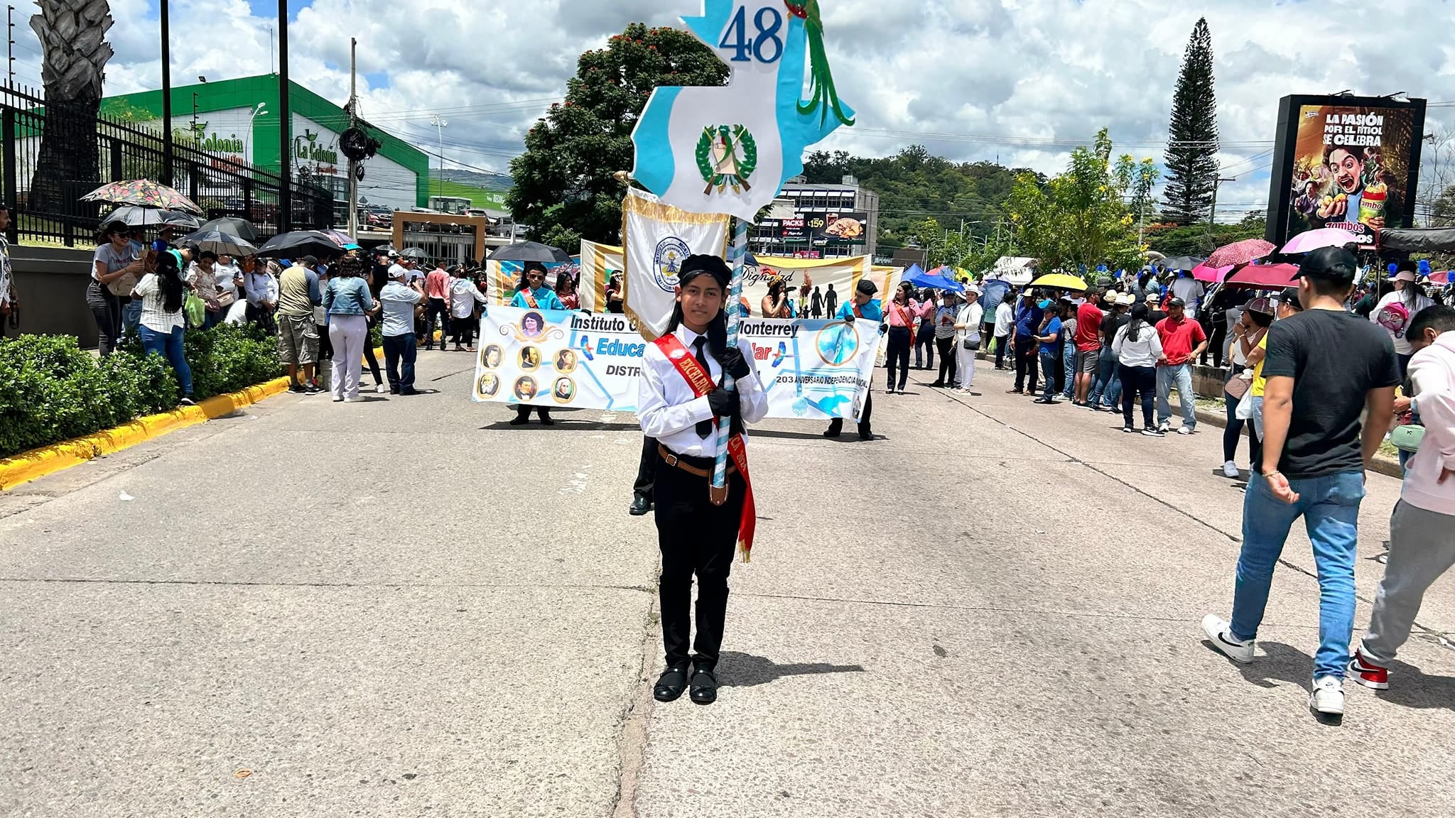 El Instituto Gubernamental Monterrey fue es el número 48, bloque 6. También acompañaron los estudiantes de excelencia académica, cuadros artísticos, de deportes y los orgullosos padres de familia.