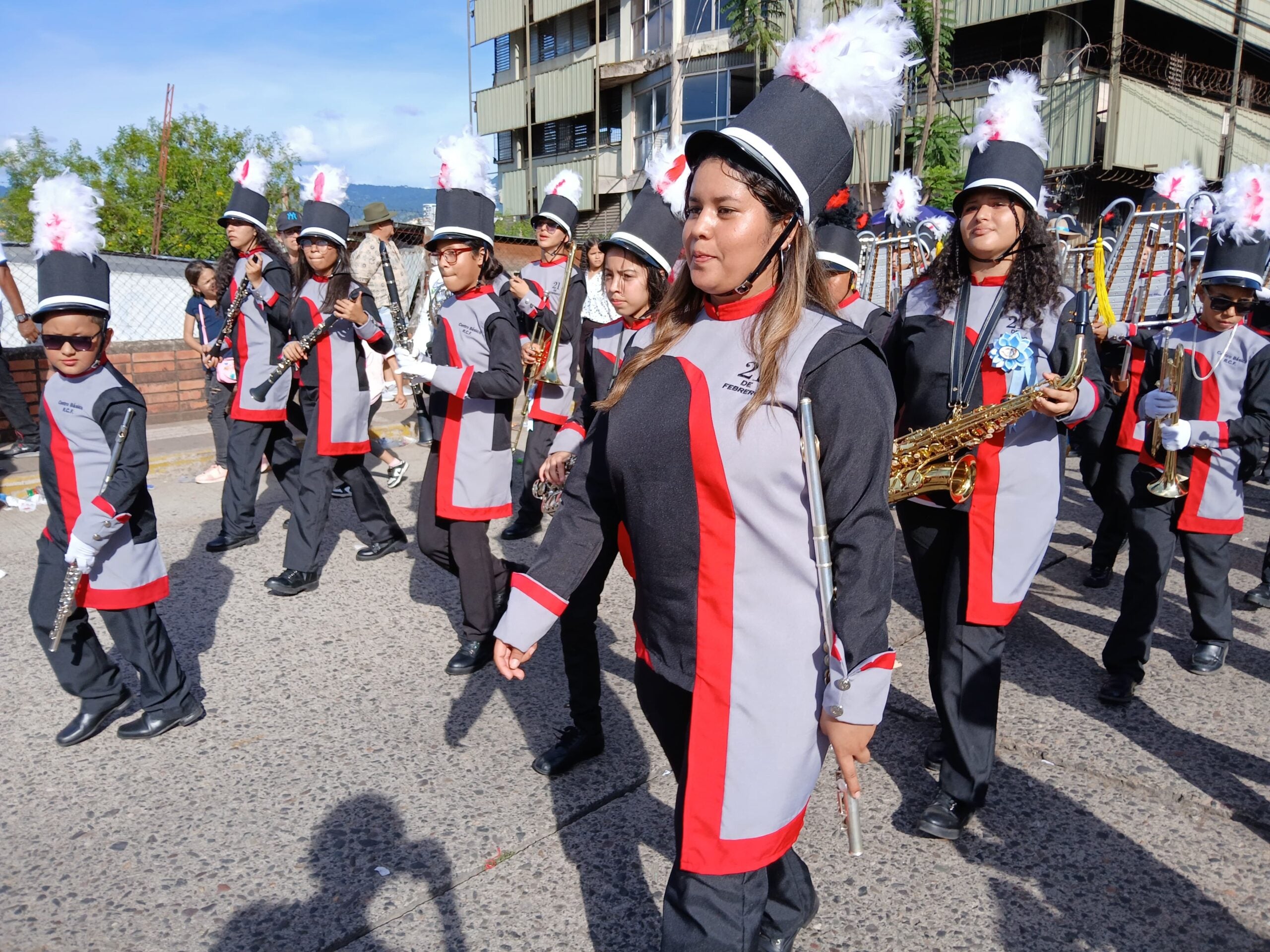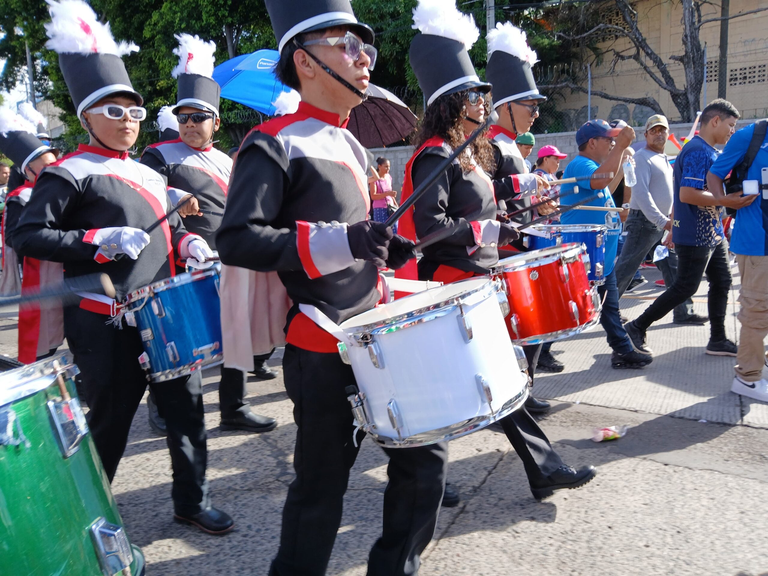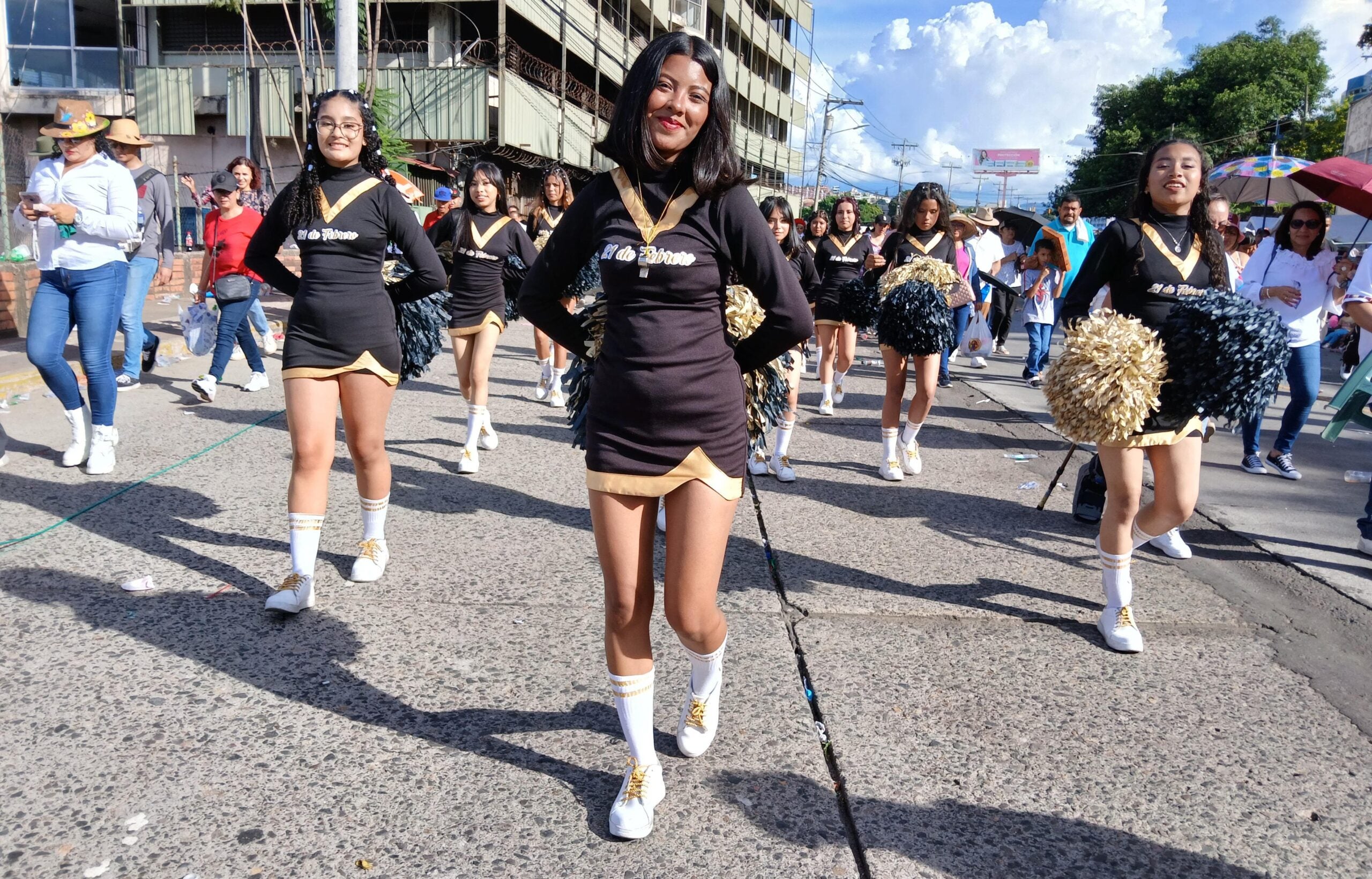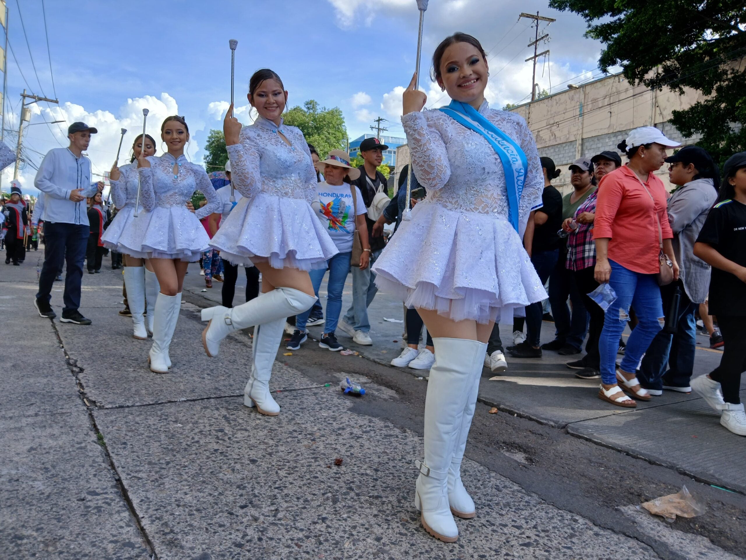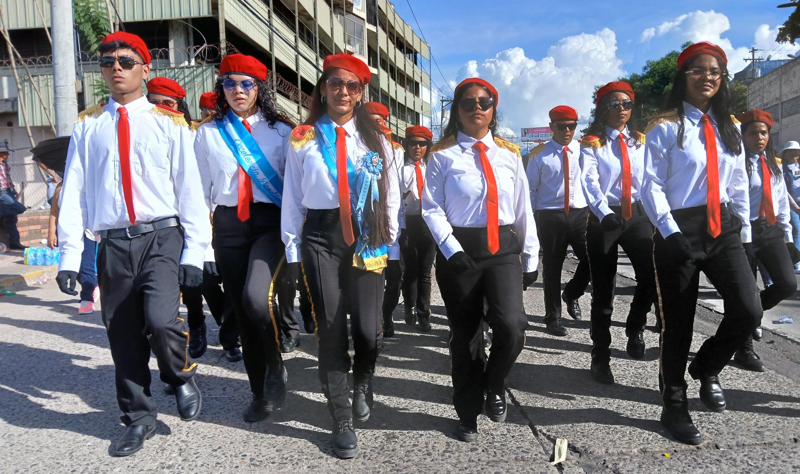 Estudiantes de este instituto mostraron un profundo sentimiento patriótico al formar parte de las celebraciones por la independencia de Honduras, a pesar de las altas temperaturas que imperan en la capital.