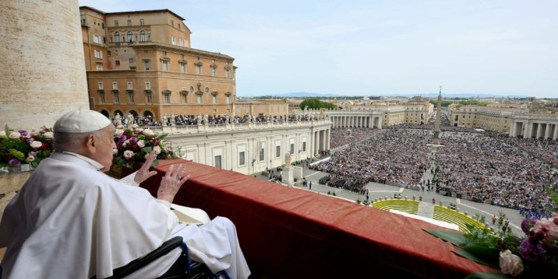 AFP. El papa Francisco, todavía convaleciente de una neumonía, apareció este domingo en el balcón de la basílica de San Pedro del Vaticano y con una débil voz le deseó una «feliz Pascua» a los miles de fieles congregados allí por el Domingo de Resurrección.