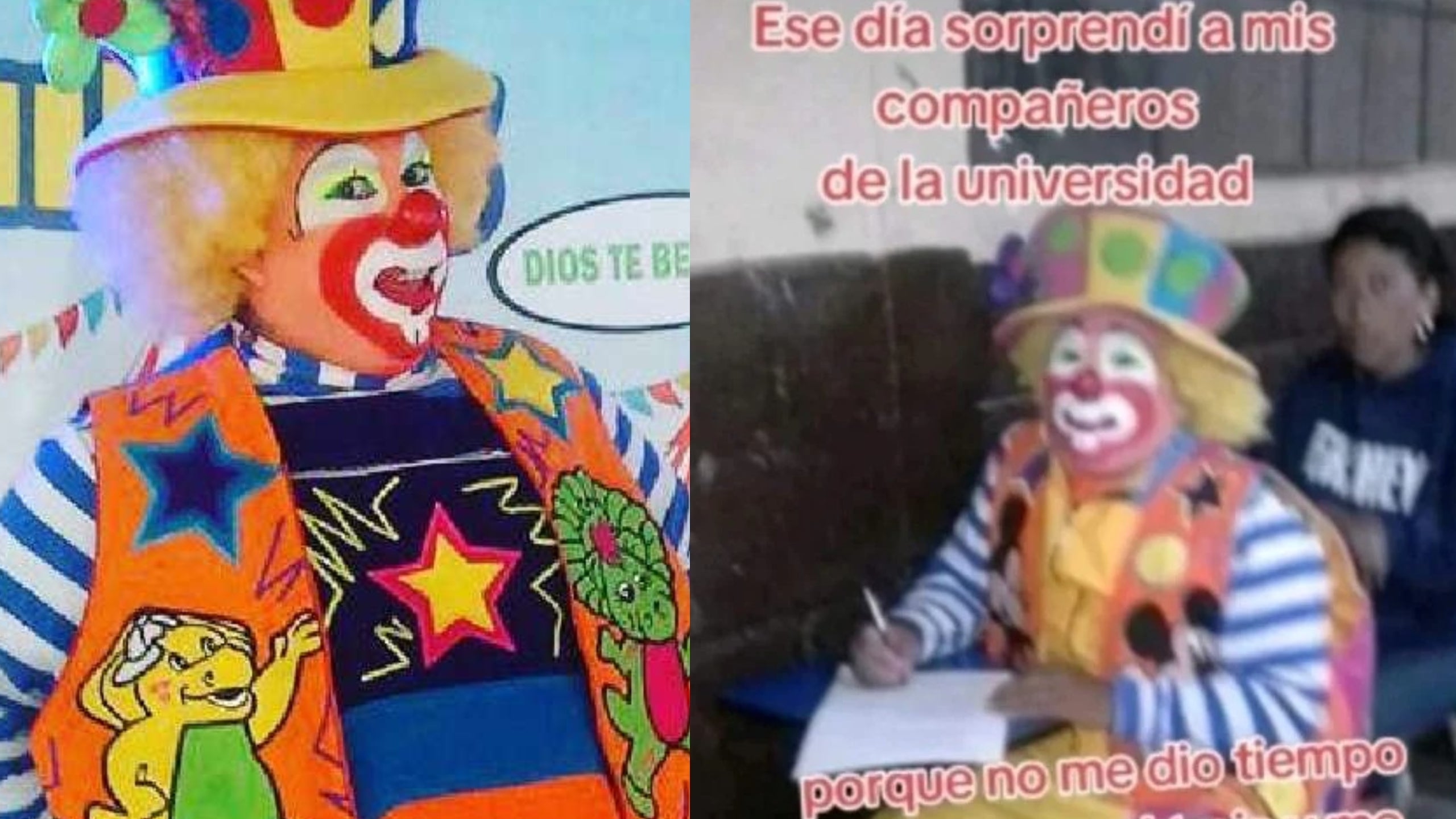 Redacción. Un video en el que aparece un payasito en un salón de clases se está haciendo muy popular en redes sociales, sobre todo en TikTok, pues muchas personas se han preguntado qué hacía este personaje sentado en un pupitre con todo y vestuario como si estuviera tomando una clase y ahora ya sabemos por qué.