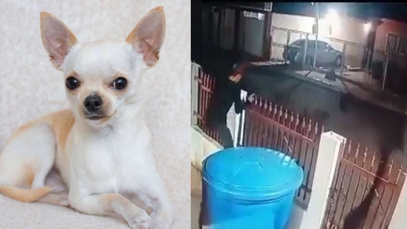 A los segundos se observa que los ladridos provenían de tres pequeños chihuahuas. Seguidos de ellos salió su propietario, quien siguió al ladrón por la calle.