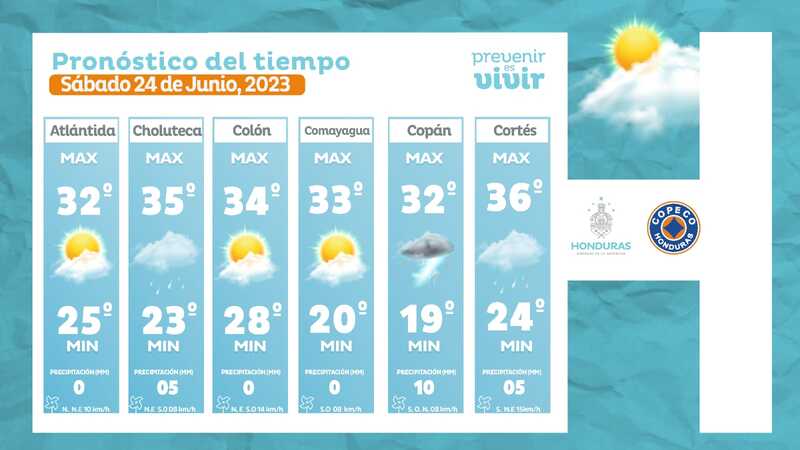 - Choluteca: 35° como máximo, 23° como mínimas (5 milímetros)