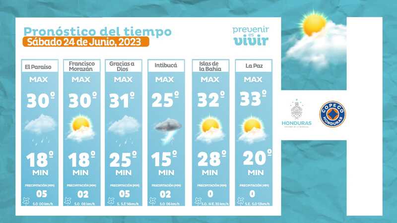 - Olancho: 32° como máxima, 23° como mínimas (5 milímetros)