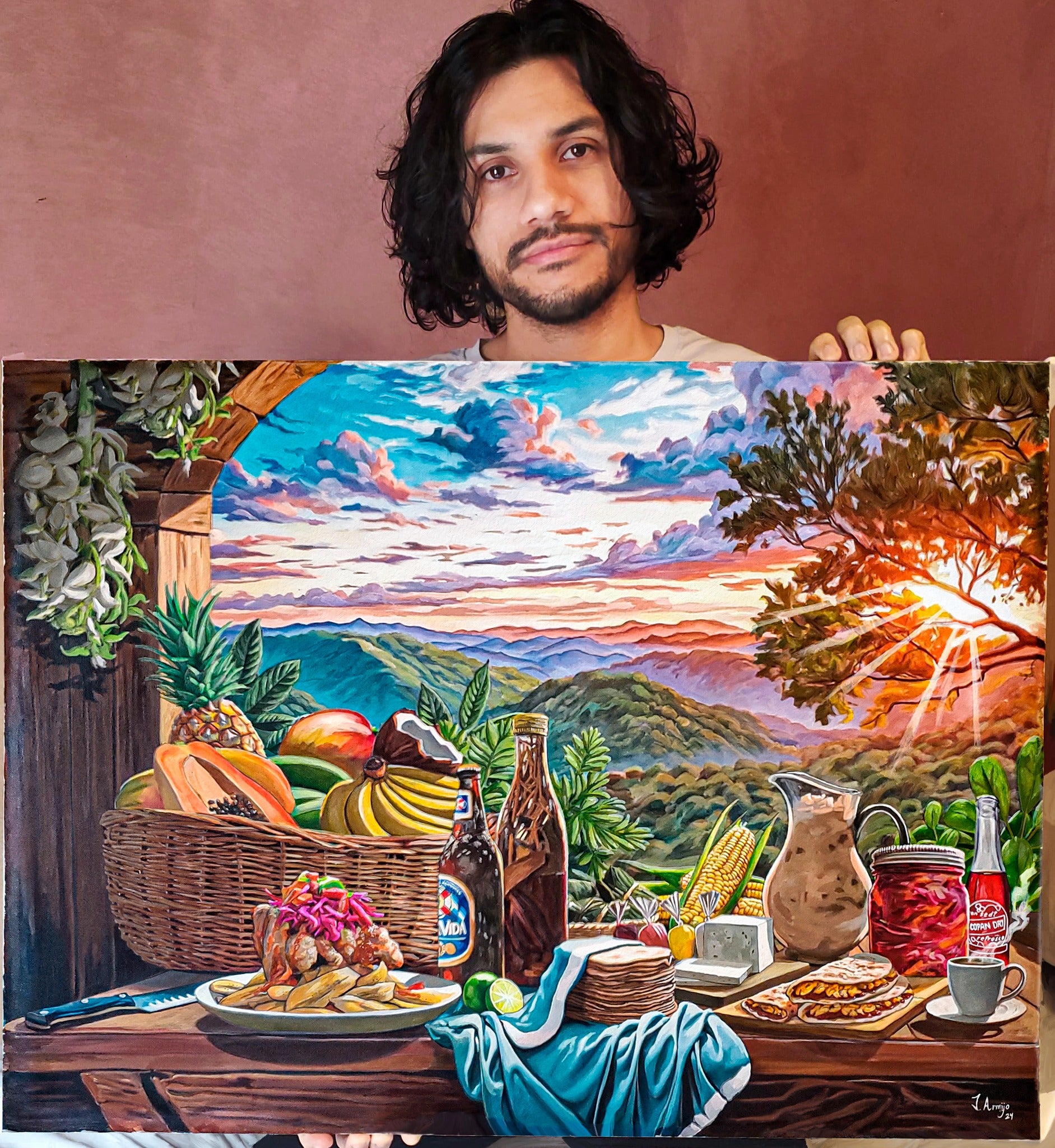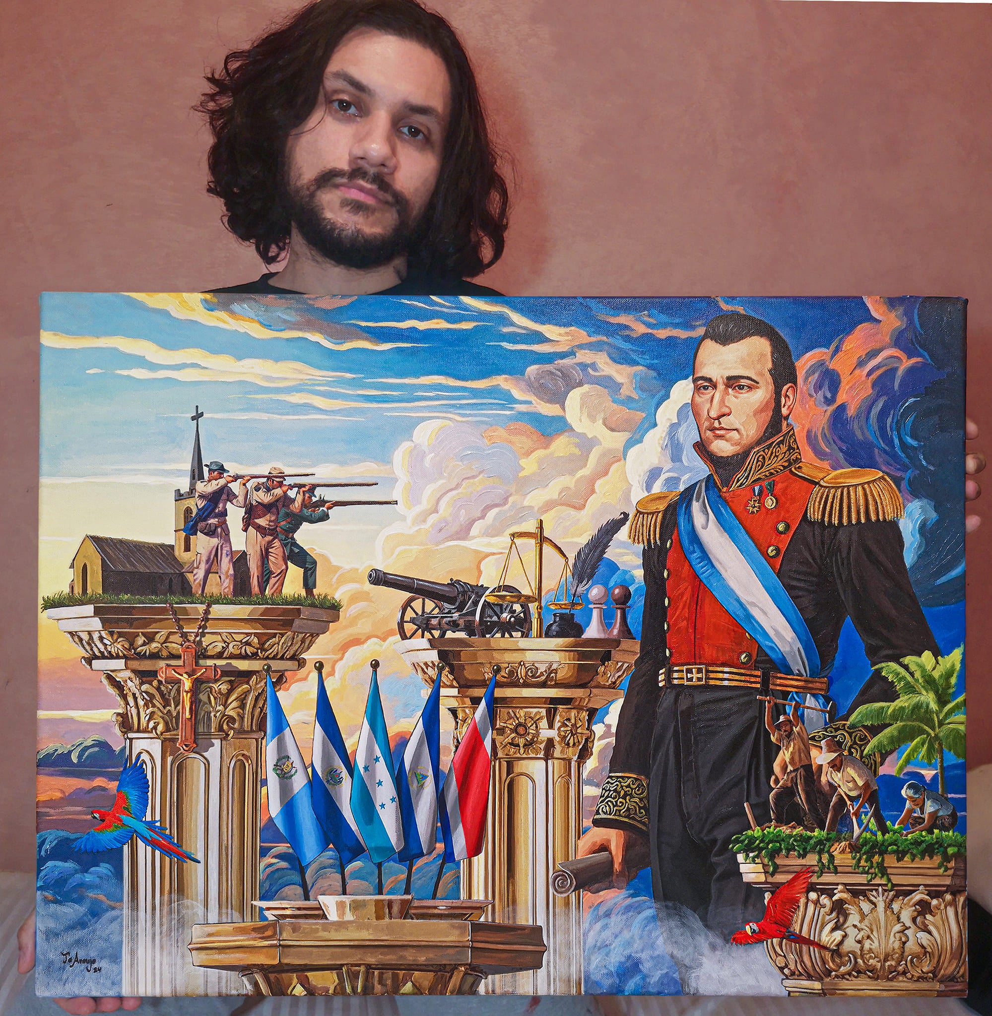 «Celebro a mi país a través del arte. Durante estos años he tratado de captar la esencia de Honduras y expresarla en mi estilo y visión. Aunque estas obras no están directamente relacionadas con la independencia, quiero que recordemos no solo nuestra historia, sino también la belleza que nos rodea», escribió el talentoso pintor.