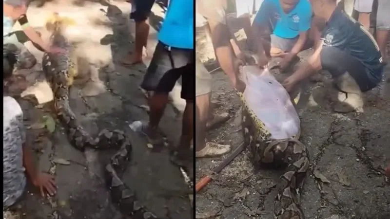 Según reportes, los habitantes del lugar sospecharon que algo andaba mal al avistar la enorme pitón forcejeando en medio de la maleza. Desde ese momento, creyeron que se había comido algo grande, por lo que la mataron para abrirla y allí se llevaron la sorpresa.
