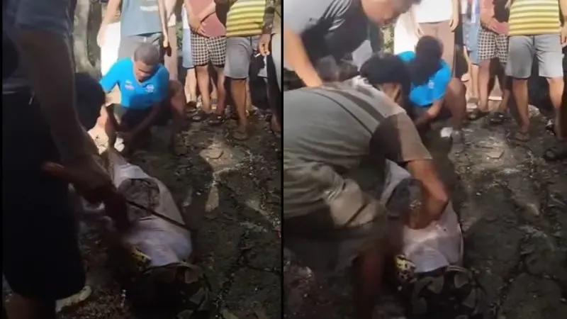 Redacción. Un momento de película de terror y asombro presenciaron varios pobladores de una aldea en Indonesia luego de extraer el cuerpo de un agricultor del estómago de una serpiente pitón de 8 metros que se lo había tragado vivo.