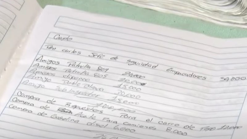 Además, decomisaron libretas contables que detallaban el pago a funcionarios policiales, compra de repuestos, así como la remuneración a los gatilleros que conforman la banda criminal, y algunas facturas.