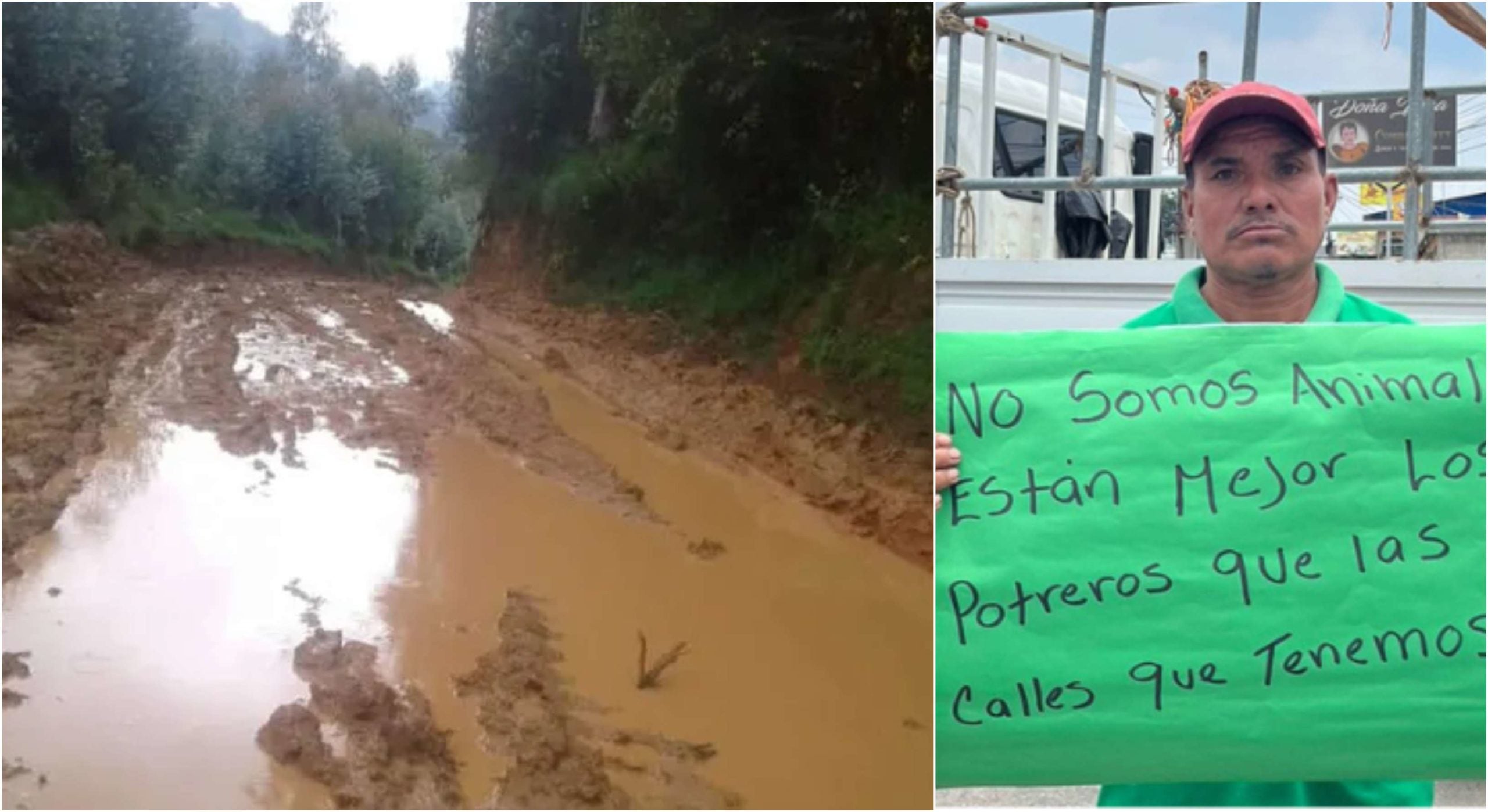 A través de las redes sociales mostraron mensajes escritos en pancartas. En una de ellas podía leerse: «no somos animales, están mejor los potreros que las calles», y en otra: «Necesitamos y exigimos calles dignas».