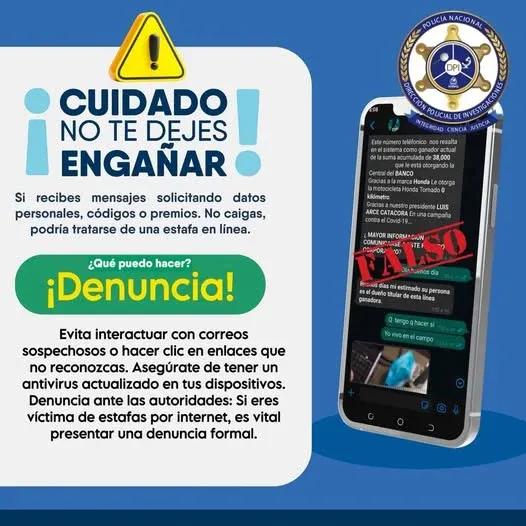 «Cuidado, no te dejes engañar. Si recibes mensajes solicitando datos personales, códigos o premios. No caigas, podría tratarse de una estafa en línea«, expuso la DPI en sus canales oficiales.