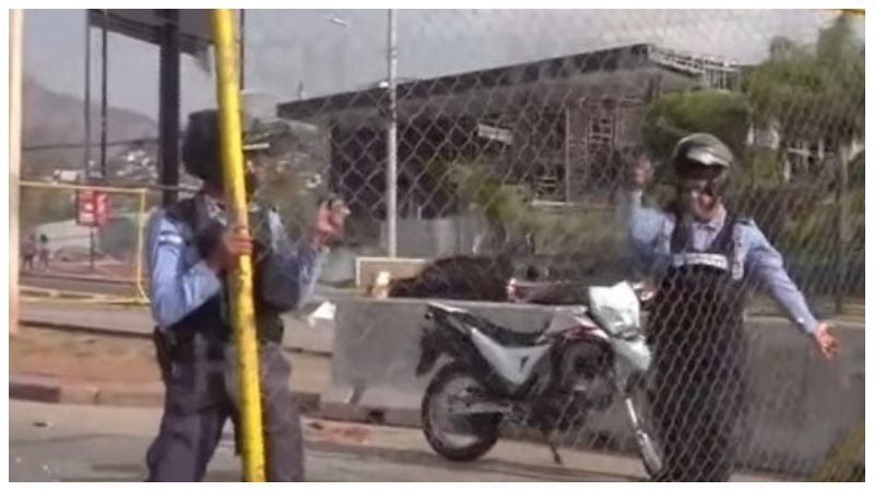 En ese contexto, los estudiantes cerraron el paso vehicular y al ver la presencia policial comenzó un enfrentamiento. Los uniformados tiraron una bomba lacrimógena para disuadir a los protestantes.