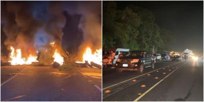 Los manifestantes bloquearon el paso de vehículos en ambas direcciones con la quema de llantas, lo que provocó largas filas y una notable congestión vehicular.