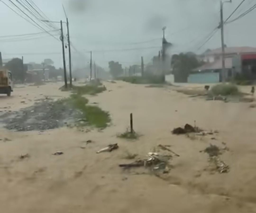 De igual manera, en la carretera CA-13 que atraviesa La Ceiba, se reporta un enorme tráfico vehicular por la anegación de las calles.