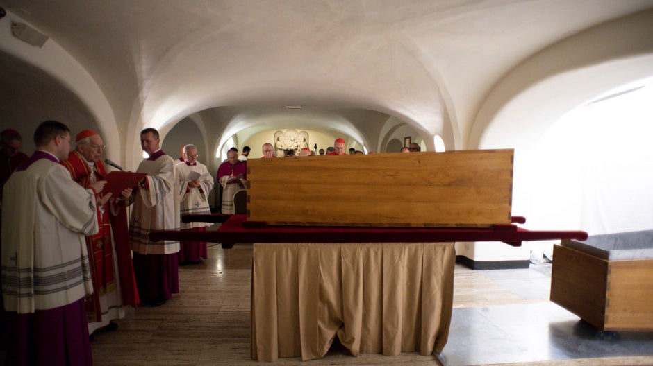 Previo al entierro, se celebra una misa fúnebre solemne en la Plaza de San Pedro, donde miles de fieles y representantes del clero se reúnen para rendir homenaje. Solo después de esta eucaristía comienza el proceso del triple féretro y la posterior sepultura en las Grutas Vaticanas, lugar donde reposan los restos de varios pontífices a lo largo de la historia.