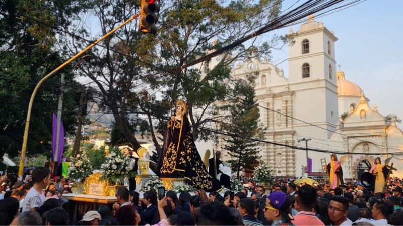 La procesión se llevó a cabo en la Avenida Cervantes de Tegucigalpa, donde el padre Carlo Magno Núñez acompañó el evento como presidente honorario de la Hermandad de la imagen del Cristo de la Misericordia.