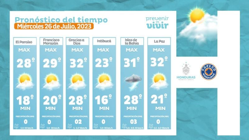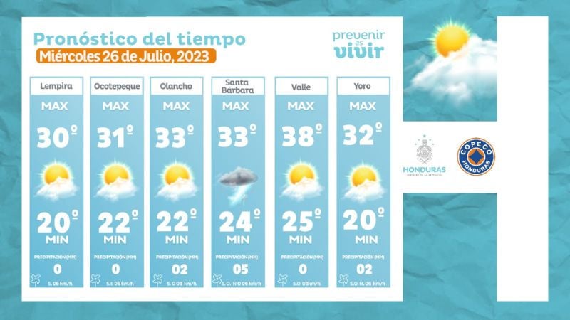 Honduras.- Las autoridades del Centro de Estudios Atmosféricos, Oceanográficos y Sismológicos (CENAOS) pronosticaron condiciones estables y secas en la mayor parte del territorio nacional este miércoles 26 de julio.