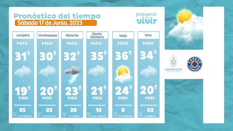 Honduras. Las autoridades del Centro de Estudios Atmosféricos, Oceanográficos y Sismológicos (CENAOS) pronosticaron que este sábado 17 de junio estará nublado y podrían presentarse lluvias.