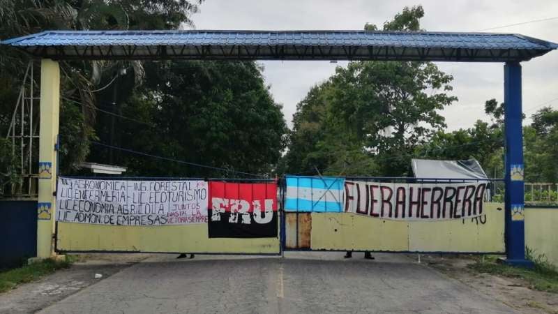 ATLÁNTIDA, HONDURAS. Estudiantes de dos carreras del Centro Universitario Regional del Literal Atlántico (CURLA) en La Ceiba, mantienen tomadas las instalaciones del recinto educativo.
