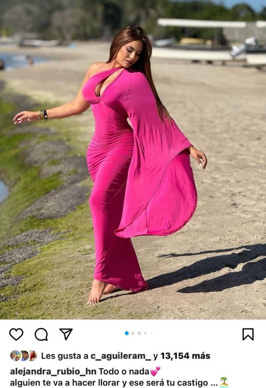 En una serie de fotos sensuales, donde luce un elegante traje rosado que resalta su esbelta figura, Rubio dejó una frase que no pasó desapercibida: «Todo o nada. Alguien te va a hacer llorar y ese será tu castigo«.