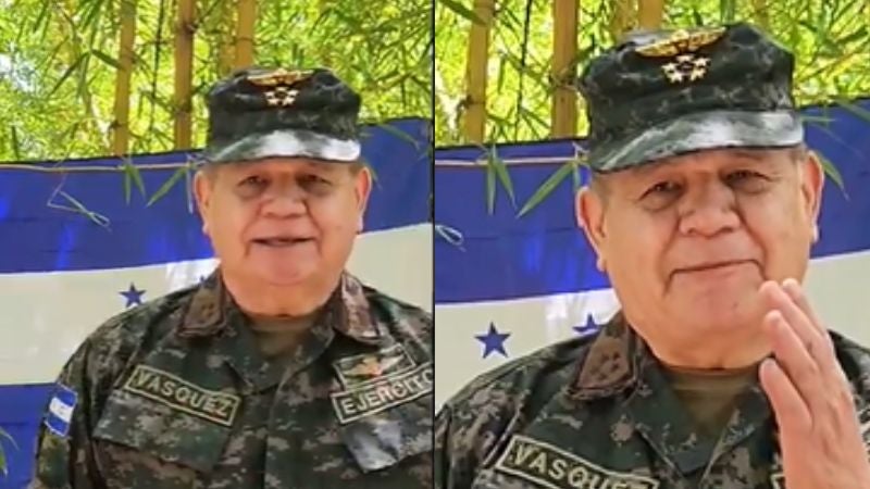 Romeo Vásquez reapareció en un video vistiendo su uniforme militar, con la Bandera Nacional de fondo.