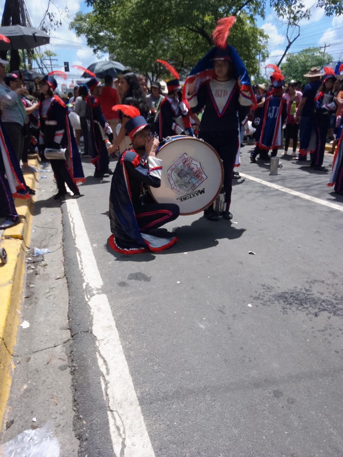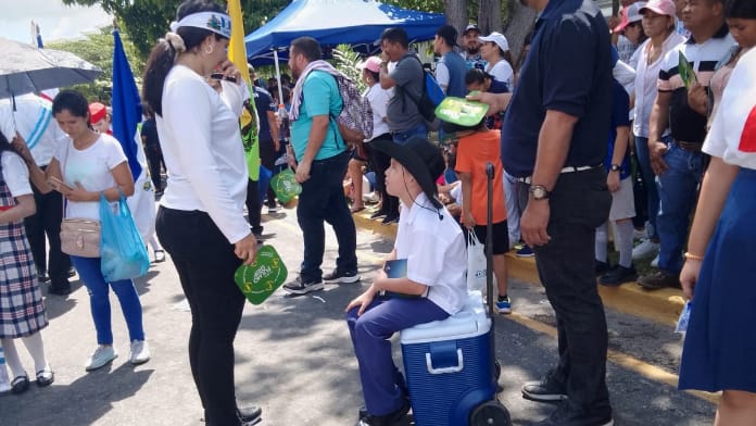 Una madre hondureña llamó la atención en los desfiles de San Pedro Sula, por ir detrás de su hijo con un abanico, soplándolo debido al sofocante calor que cubre los desfiles en la ciudad industrial.