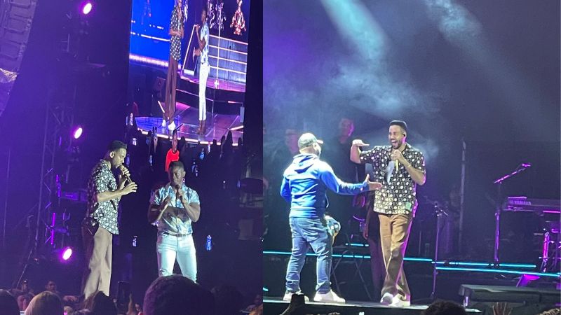 Romeo Santos tuvo la deferencia de invitar a Santy al escenario, quien andaba como espectador en el concierto; le indicó que para ganarse el derecho de cantar con él lo pondría antes a prueba.