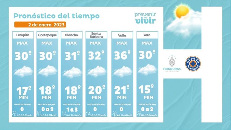 - Choluteca: 36° como máximo, 22° como mínimas (0 milímetros)