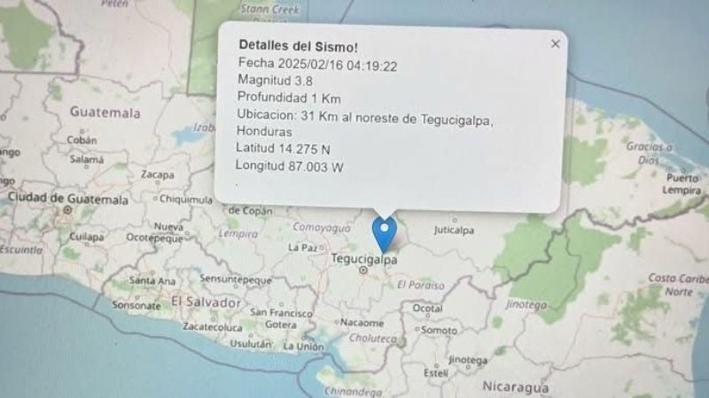 El movimiento telúrico se registró a las 4:19 a. m., con una profundidad de apenas un kilómetro. Su epicentro se localizó a 31 kilómetros al noreste de la ciudad, en el departamento de Francisco Morazán.