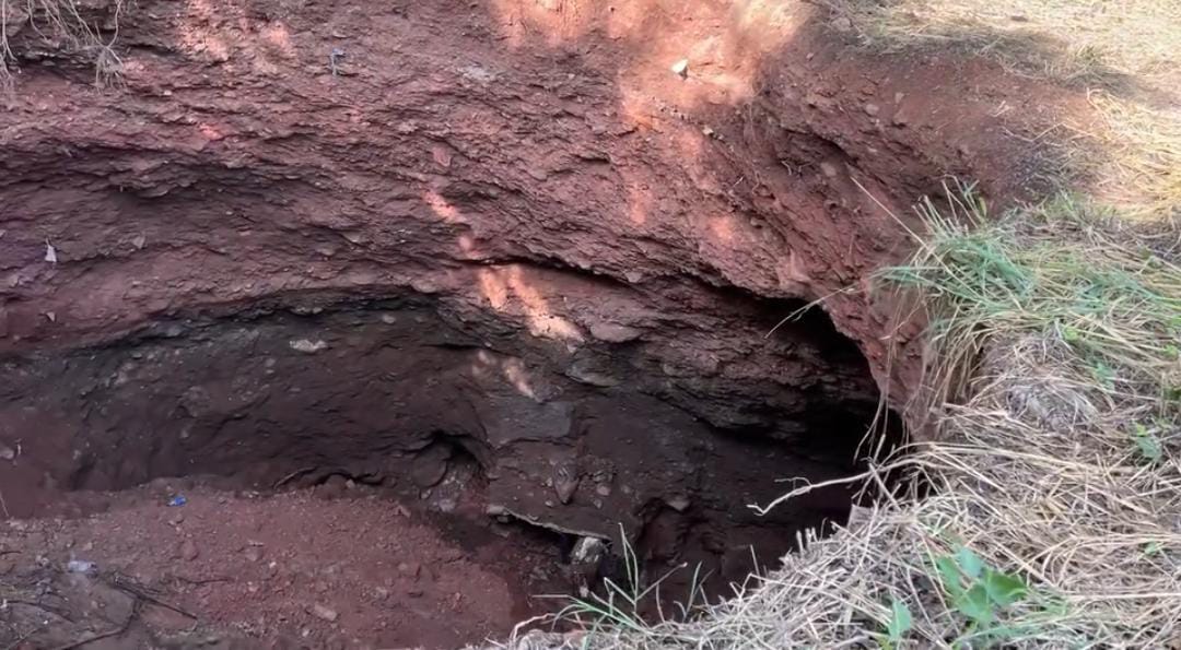 El socavón -de aproximadamente 10 metros- se formó en un solar baldío ubicado en la parte trasera de la Escuela República de China. Según testimonios de los vecinos, el agujero tiene varias semanas aumentando su tamaño y están seguros que «seguirá creciendo».