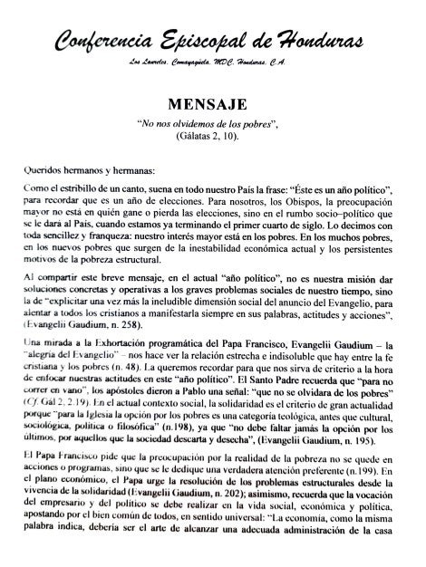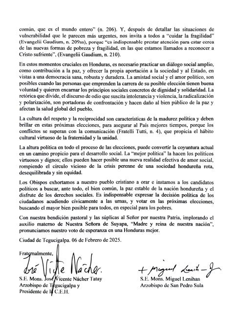 Por otra parte, en su mensaje titulado “No nos olvidemos de los pobres”, la iglesia destacó que la madurez política se refleja en la cultura del respeto y la reciprocidad. Estos son elementos clave para asegurar un futuro mejor para Honduras.