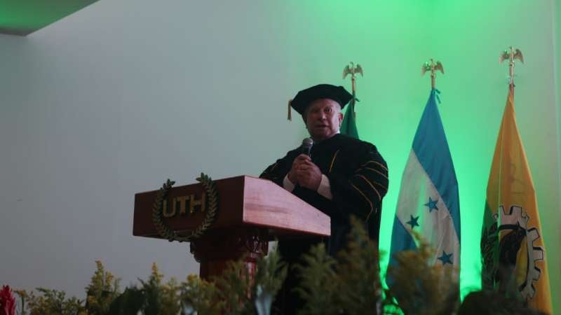 En su discurso principal, Roger D. Valladares destacó el compromiso de UTH con la internacionalización, resaltando la presencia de becas nacionales e internacionales, así como la continua innovación tecnológica y el alto nivel de calificación de los docentes.