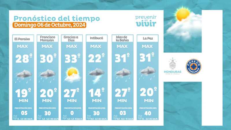 Clima. El Centro Nacional de Estudios Atmosféricos, Oceanográficos y Sísmicos (Cenaos) pronosticó lluvias en la mayor parte de Honduras para este domingo 06 de octubre.