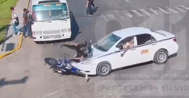 Las imágenes revelan el momento exacto en que el taxista impacta lateralmente a la motocicleta. Tras el suceso, el conductor de la motocicleta impactó contra el capó del carro y se deslizó hasta terminar en el pavimento.